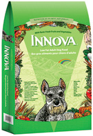 五大食物群をすべてバランスよく配合したイノーバシリーズの肥満犬用。低脂肪で体重調整が必要なワンちゃんに最適。(『イノーバ アダルト』にくらべ脂肪分を40%カットしている) 主原料 七面鳥肉、鶏肉、大麦、玄米、ポテト、米、エンドウ豆繊維、鶏肉粉、ニシン、天然香料、鶏脂肪、フラックスシード、リンゴ、ニンジン、ニシンオイル、サンフラワーオイル、卵、カッテージチーズ、アルファルファスプラウト、カボチャ、乾燥チコリ根、L-カルニチン、ビタミン類(E、アスコルビン酸、ベタイン、A、ナイアシン、パントテン酸カルシウム、β-カロチン、B12、D3、リボフラビン、塩酸ピリドキシン、硝酸チアミン、ビオチン、葉酸)、ミネラル類(炭酸カルシウム、亜鉛、鉄、銅、マンガン、ヨウ素酸カルシウム)、微生物類、レシチン、ローズマリーエキス |