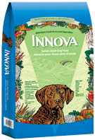 五大食物群をすべてバランスよく配合したイノーバシリーズの高齢犬用。「成犬と高齢犬の必要な栄養はほぼ同じで加齢による消化吸収能力の低下などを考えると成犬よりたん白質・脂肪を多く必要とする」という最新の考え方に基づいている。 主原料七面鳥肉、鶏肉、大麦、玄米、ポテト、米、鶏肉粉、鶏脂肪、豆繊維、フラックスシード、天然香料、リンゴ、ニンジン、卵、サンフラワーオイル、ニシンオイル、カッテージチーズ、アルファルファスプラウト、カボチャ、乾燥チコリ根エキス、塩酸グルコサミン、コンドロイチン硫酸、乳酸菌類、レシチン、ローズマリーエキス、ビタミン類(E、アスコルビン酸、ベタイン、A、ナイアシン、パントテン酸カルシウム、β-カロチン、B12、D3、リボフラビン、塩酸ピリドキシン、硝酸チアミン、ビオチン、葉酸)、ミネラル類(炭酸カルシウム、亜鉛、鉄、銅、マンガン、ヨウ素酸カルシウム)、酸化防止剤(ミックストコフェロール) |